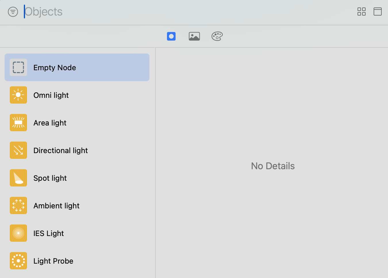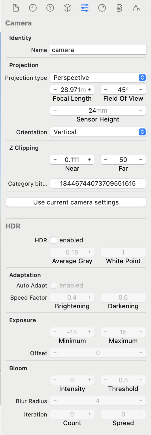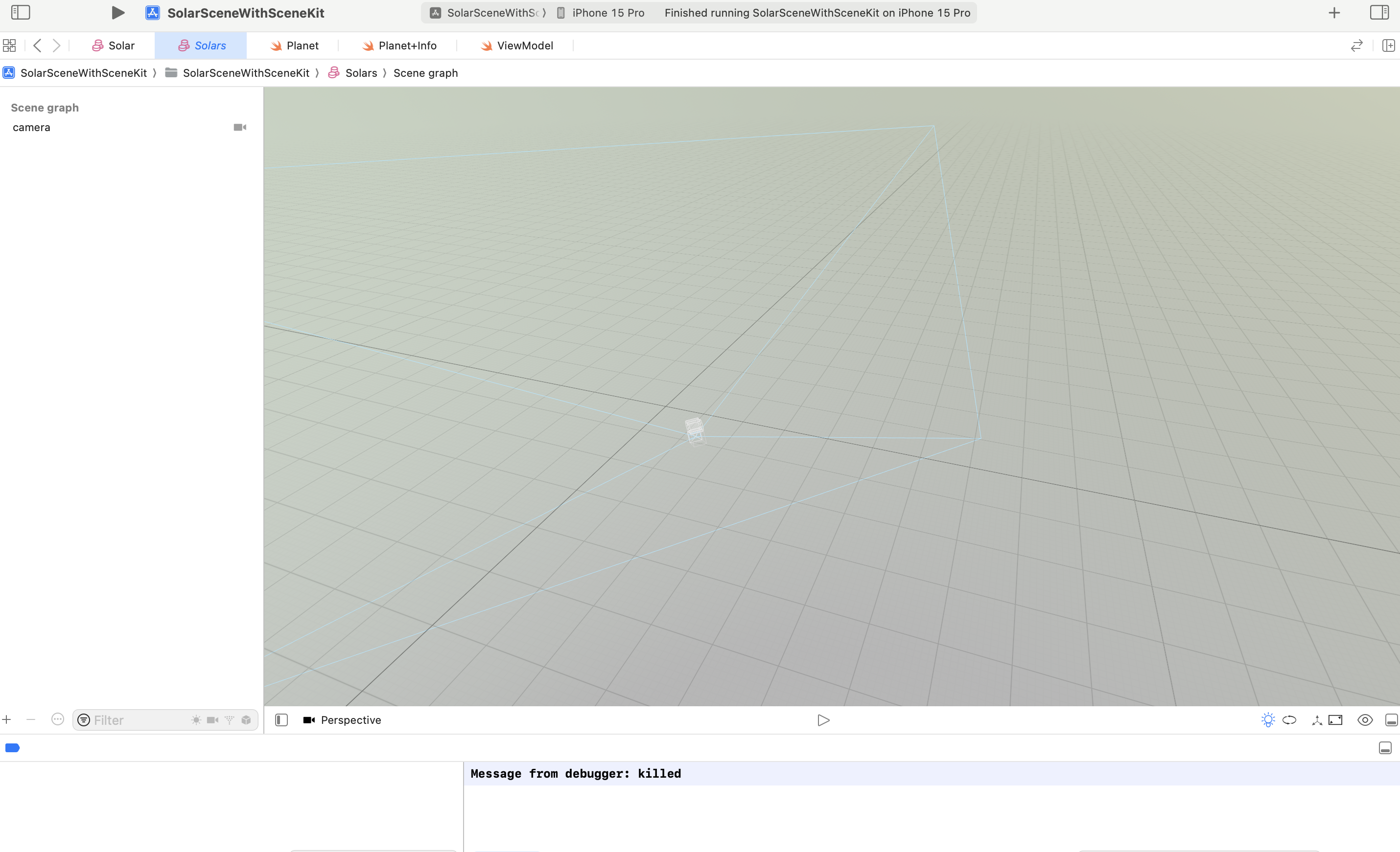 在Scene Editor的左边区域,可以看到整个场景中包含的节点,新建的场景中摸下情况下只有一个相机(Camera)节点。让我们先来看一下 Apple 官方对场景(SCNScene)的定义: