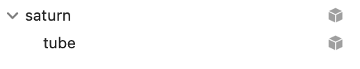 点击 Xcode 顶部的**+按钮,选择或者搜索一个Tube**形状节点添加到saturn节点上。添加完成后,在节点管理中中的结构如下: