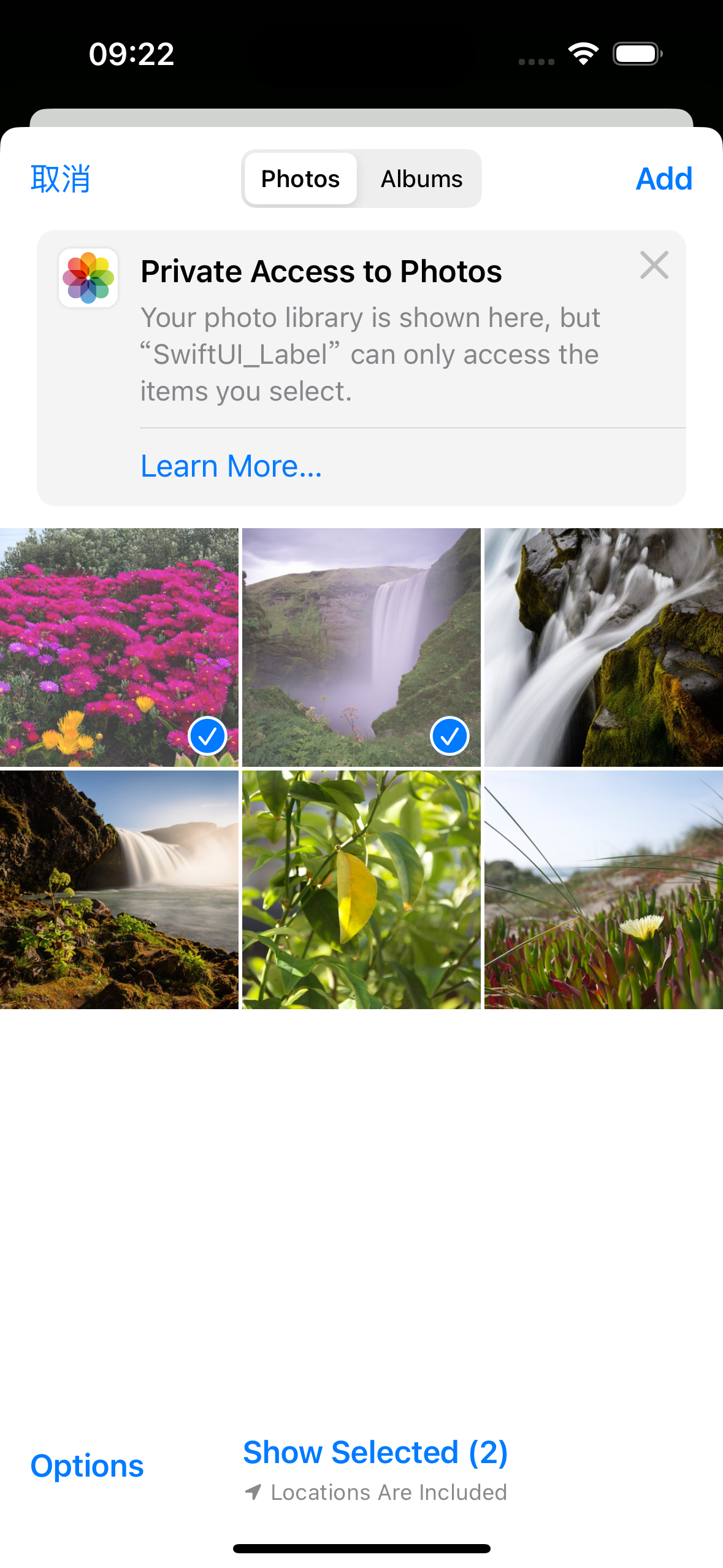 PhotosPicker("选择喜欢的照片", selection: $selectedImages)