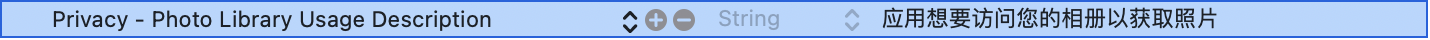 因为相册里面的照片属于用户的敏感隐私数据,所以访问的时候会有隐私数据的提示。一般情况下,Apple 希望我们在隐私设置中添加访问敏感隐私数据的使用说明。