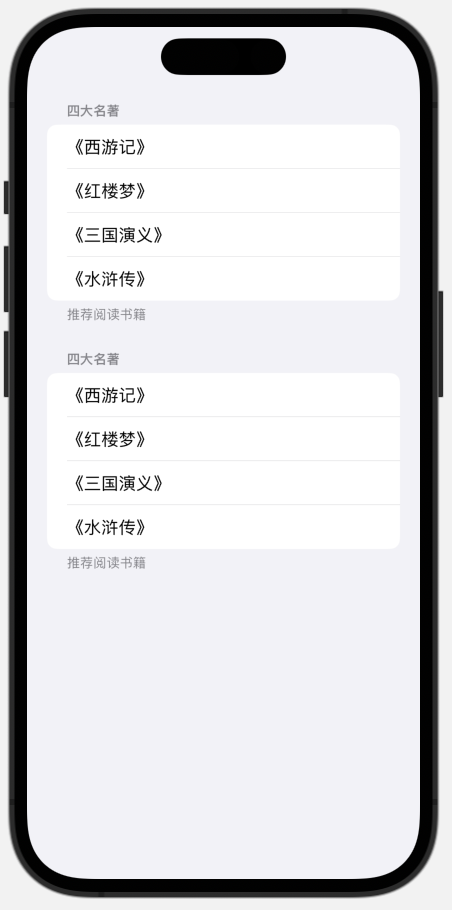 我们可以通过 listStyle 修饰器来定义List 不同的风格样式,insetGrouped、inset、grouped、plain、sidebar、automatic。
