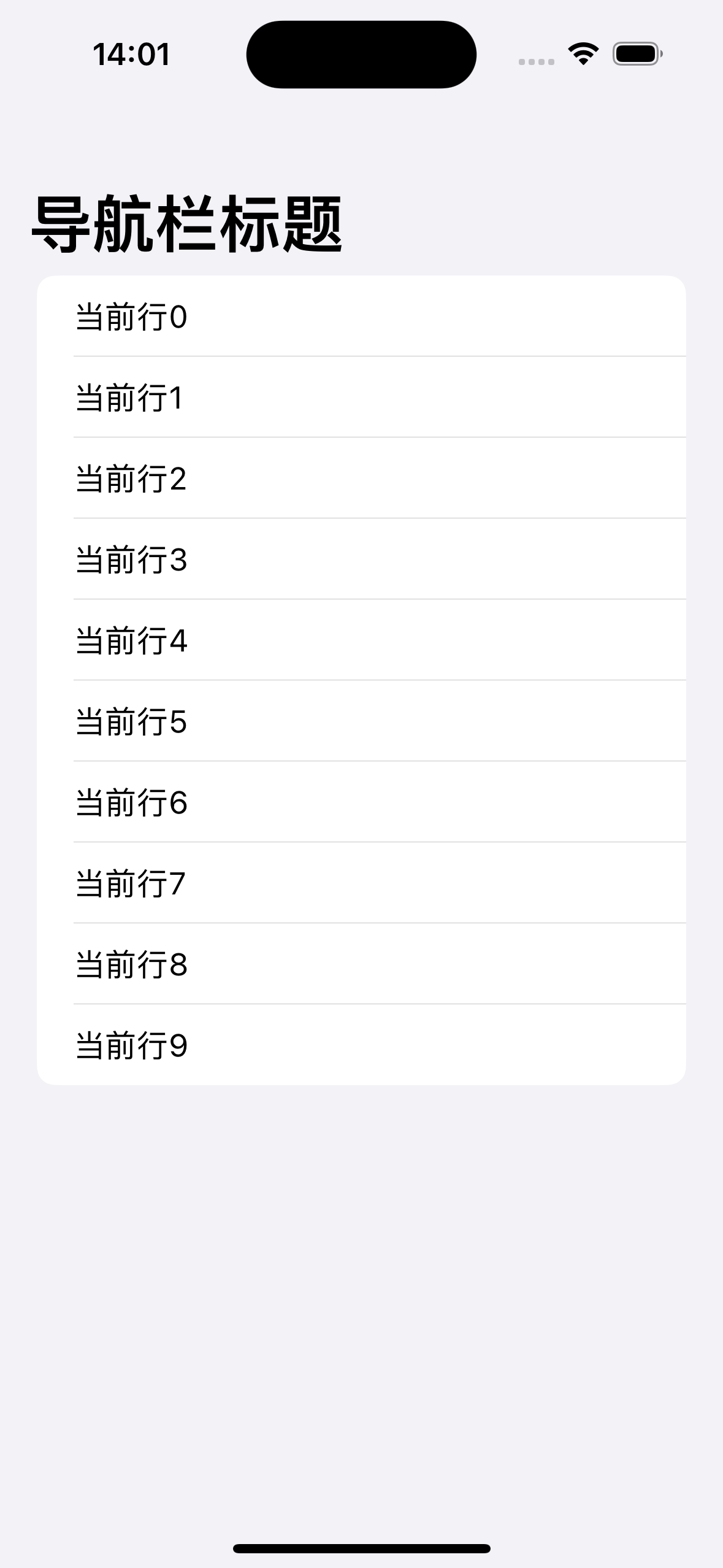 NavigationStack的第一个子视图List添加navigationTitle修饰器,注意,这个修饰器的作为就是给导航栏添加标题。 - 使用