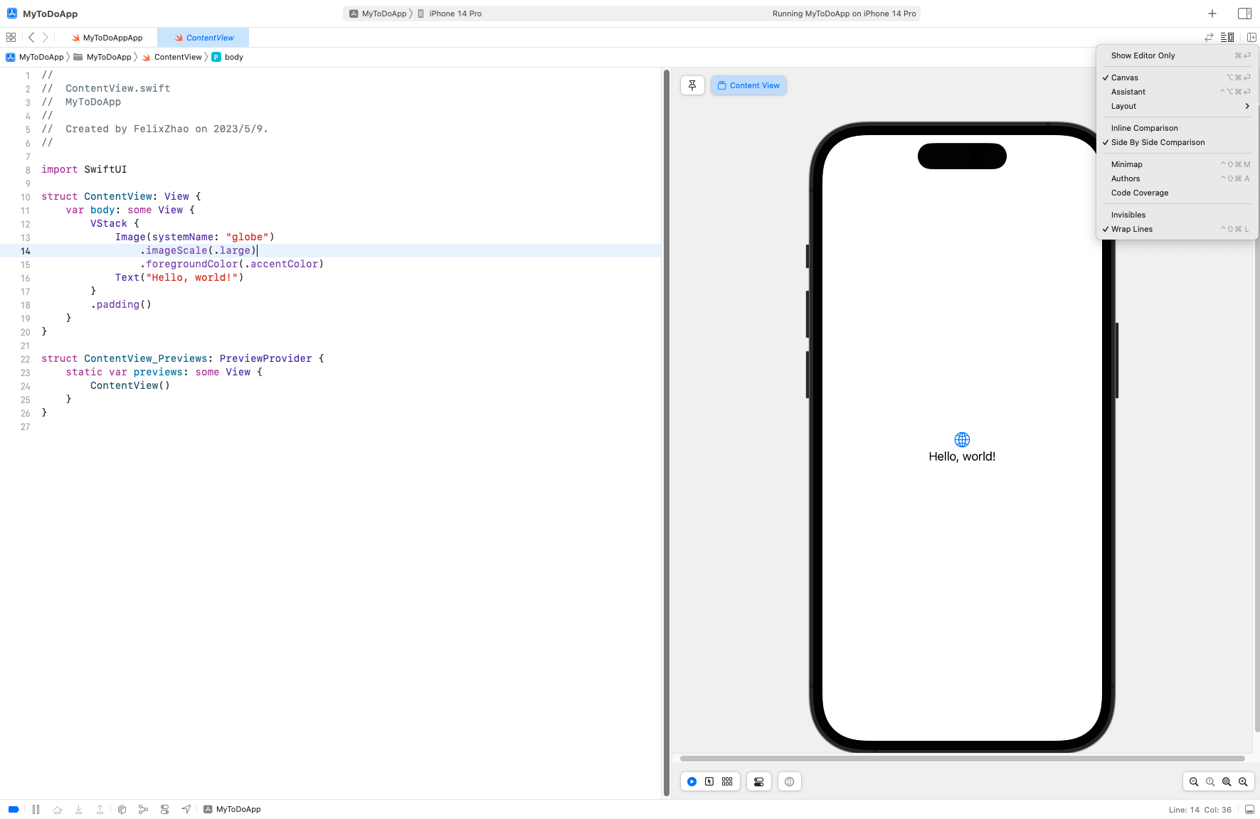 Command + B: 快速进行项目的编译,可以在不运行的情况下检查我们的代码编写是否存在错误;Command + R: 在指定模拟下运行项目;Command + N: 在项目中创建一个文件;Command + Option + P:重新加载SwiftUI的预览界面。在默认情况下,我们在代码区域编写完成SwiftUI的代码后,右边的预览区域会自动进行加载,但是当我们的SwiftUI代码很多或者自动加载失败时就可以使用这个快捷方式重新快速加载预览而无须通过鼠标点击的方式进行。