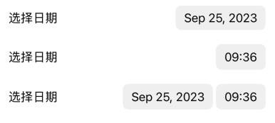 DatePicker("选择日期", selection: $selectedOptions, displayedComponents: [.hourAndMinute, .date]) // 默认均可选