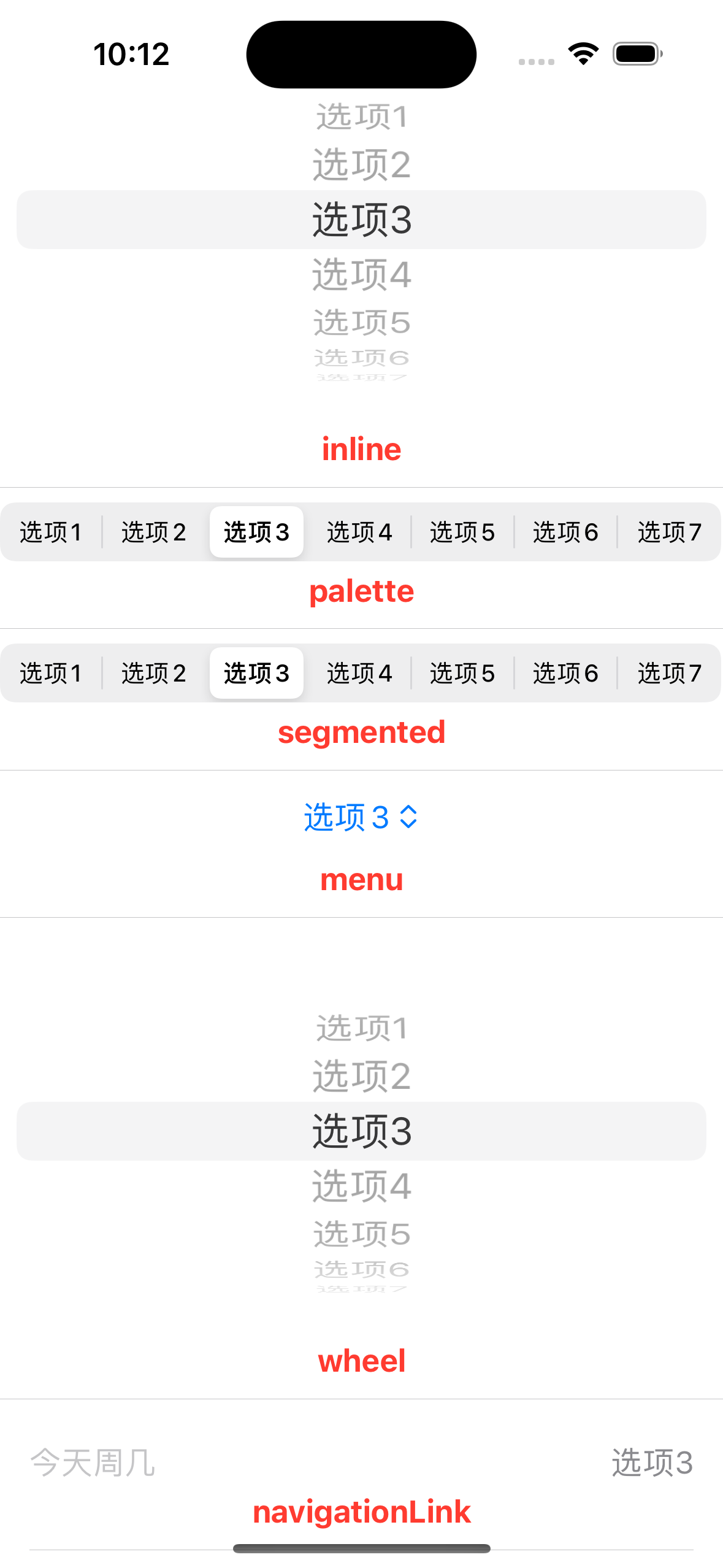 我们可以设置这些风格 inline、segmented、wheel、palette、menu、navigationLink。