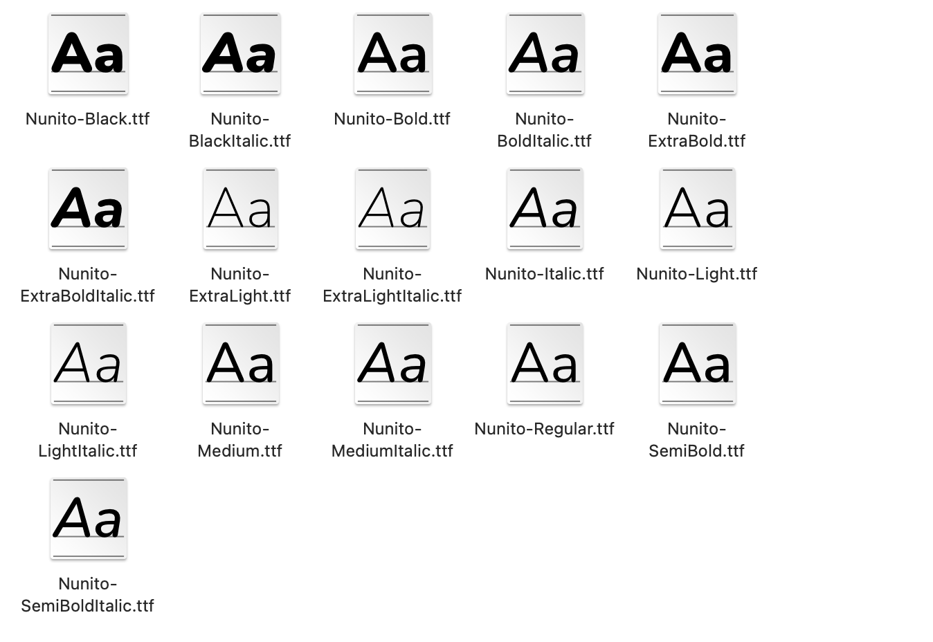 在一下 app 中,我们可能想要使用自定义的字体而不是系统的字体。例如,我们想要使用https://fonts.google.com/specimen/Nunito 字体作为我们 app 的字体。那么我们就需要自定义 app 使用的字体。