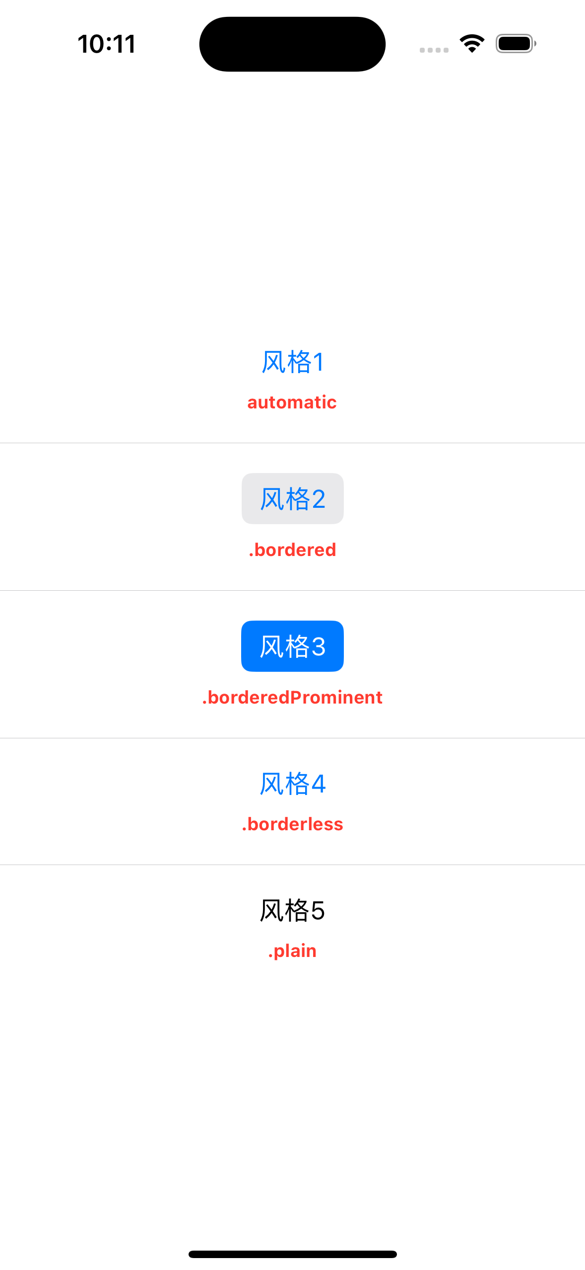 Button的风格可以通过 .buttonStyle 修饰器来进行修改,我们可以定义以下的几种风格: